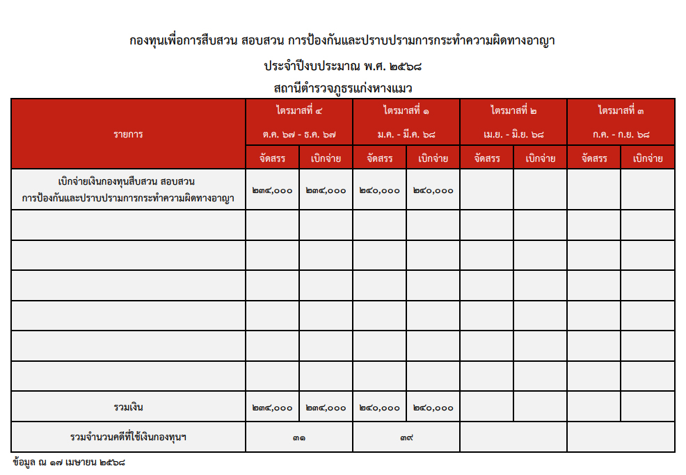 ข้อมูลเงินกองทุนเพื่อการสืบสวน สอบสวน การป้องกันและปราบปรามการกระทำความผิดทางอาญา